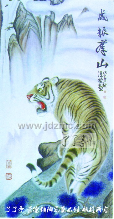 年届五十的画家潘杰,是九江人,山东威海市书画院院长。他擅长戏曲人物手指画、工笔老虎、牡丹,兼花鸟、人物。艺术特点承潘天寿先生遗风,以指代笔,潇洒自然。翻开潘杰的画集,一种深邃隽永的意蕴和迷离古拙的意境扑面而来,其艺术人生更精彩。