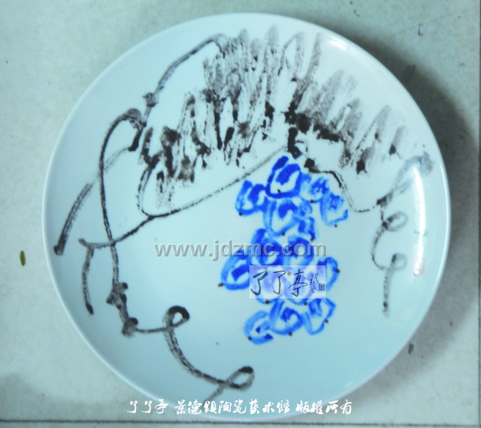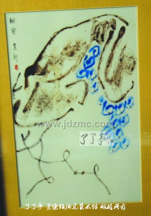 大隐隐于市。沈建新的画室是自家的一间杂物间改造的,光线有些黯淡、市声在不远处喧嚣,但面对洁白的瓷板、色彩斑斓的颜料,沈建新却能在这里找到内心的安宁,他工作之外的许多时光,就这样在笔端流走,一些有生命的花花草草、一些有灵性的葡萄和小鸟,构成了带有他强烈个人色彩的陶艺世界。