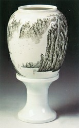 无奈自太平洋战事起,象牙的来源断绝了,恰巧这时有位朋友送给他一把工艺上用的钻石刀,劝他刻瓷,他就听从朋友的话试刻着。他有细刻象牙的基础,腕力又强,一刻就感到用钻石刀在瓷器上刻出的线条更富有金石气,且瓷器的面积比象牙大得多,有利于表现更丰富的内容,兴趣就愈发提高了。员怨缘猿年,他的牙刻和瓷刻作品在全国民间工艺展览会上展览,有人对他说:“象牙细刻,南北各地,尚有其人,至于瓷刻,北方仅有朱友麟,年事已高迈,南方只有薛佛影和你了。”经这一提,他在瓷刻上更下功夫了。他原想到海内外各地举办流动展览,以便随处写生,收集名山大川的素材,创作出更多的新作品,只是可惜,这个理想未能实现。
