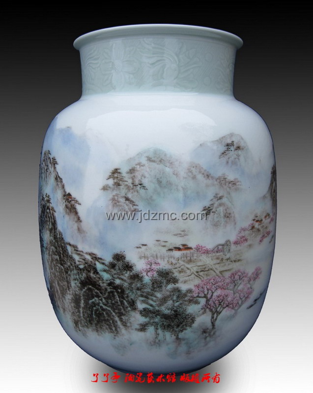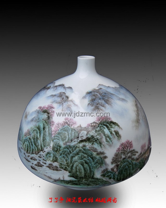 王静是个阳光率真的女孩子,聪颖活泼,快人快语。毕业于景德镇陶瓷学院,目前在江西景德镇陶瓷专业技术学院任教。她生长于陶瓷世家,其叔公是景德镇陶瓷界的泰斗王锡良,自幼小的孩童时代起她便在叔公的膝下学习绘画,而且因为思维活跃,善于思考,敢于突破定式而备受王老的喜爱。 生长于世家的年轻人最容易走入到一个艺术困境,那就是一味的模仿,无法突破。一方面是自身修养造成的,大多数家传技艺的艺术家都很少受完整系统的现代美术教育,其艺术的发端有赖于父辈祖辈的积累,较难有机会自行开创。另一方面市场因素也很主要,收藏家购买人都是冲着艺术家的家学背景来的,很少是冲着艺术家本人的作为而来的,所以后辈们只要画出这个家族的特征特色,其市场就会应接不暇,也就没有了突破与创新的冲动与必要。而这正是一些家族掌门所担忧与不愿意见到的,他们非常清楚,一味模仿是陶瓷绘画艺术的大忌,最终将走向消亡与落寞,没有出路。特别是王锡良老先生对此是深有感触,这与他的一段幼年经历有关:早在民国时期,幼年的王老初学瓷画,与其他人比总是差一点,灰心沮丧的时候,其师傅珠山八友之一的王大凡对他的说:“你虽然画的不是很好,但是你画得很活,有自己的想法,有点味道的!”。每每提及此事,王老都感慨,如果不是叔父当年的这个提示与鼓励,一定不会有自己日后的艺术成就,因此他对家族晚辈在这方面是有着最严厉的要求。而王静大胆泼辣的个性,以及在景德镇学院美术系完整的现代美术教育背景,使得她的学习创作充满激情与想法,而家族前辈王锡良老先生是最希望年轻人具有这种状态的,一如当年的自己!王静自己对此也是深有体会的,她曾很认真地说:“家学渊源是我可以取用的宝库,我一定会珍惜,但是如果我没有自己的风格与思想,一味地索取,这个资源不会永远存在,终将枯竭,那个时候我也将不复存在,创新一定是我必由之路!” 正是在这样的指导思想之下,历经十八年的艺术探索,王静的陶瓷艺术作品得到了家族与市场的双重肯定。 她的作品短口瓶《翠山春早》是非常典型的范例,整个画面的设置大气磅礴,层次分明,远中近的景色都处理的很到位,特别是她的用色非常大胆。王氏家族的山水画一般都比较古朴苍劲,这和王老的人生阅历年龄层次有直接的关联,而王静的这幅作品中大胆地使用了水红色处理,漫山遍野的红色树木使得整个画面充满了年轻人的活力与生机,展示着一位青年艺术家对生活的无比热爱。同时,山体的设色比较稳重,是王家的一贯风骨,让人一眼就能体会到作品背后的家学背景,这个稳重老成的赭石与年轻欢快的水红搭配在一起,对比适度,舒缓柔和,视觉效果非常好,令人赏心悦目。这种作品的风格就非常明显,一方面有王氏家族山水画的痕迹存在,另一方面年轻女孩细腻感性的特质又非常突出,让人过目不忘,印象深刻。 然而,艺术的创新是相当艰辛的。景德镇传统粉彩作品的画与填是分开的两道工序,常规的作法是自己画好底稿,拿去请填彩师傅填颜色,一些填彩的师傅都是传统的技法与认识,有时候艺术家作品的创作意图会被淡化甚至曲解,特别是王静在颜色是需求做一些突破,往往师傅们都不理解和配合,她喜欢的那种颜色感觉填不出来,或者总有一些误差,她觉得不能达到自己内心所想表达的那种境界,不愿凑合,不愿意“差不多”的她就开始自己研究粉彩颜料,她从市面上找来所有的粉彩颜料,反复的进行过烘炉做实验,每次都将自己的心得体会,笔触技法认真地做好记录说明,然后反复的比对修正,经过刻苦的专研学习,最终她掌握了填彩的技法,并找到了自己满意的颜色效果,才使得我们得以见到那清新脱俗,令人快乐的漫山遍野的红色。王静对色彩的研究不会停止,以后她还会揣摩出更多的颜色比如橘黄、翠绿、湖蓝、天青等等来丰富自己画面的表现。 王静对作品的器型和胎质也由自己的要求与想法。比如这个短口瓶作品,其器型属非常规瓶子,但是这种器型从底部到顶部有一个空间递进延展,非常适宜作山水画作,顶部用来作远景设置,使得观者很容易产生空间层次感,丰富了作品的表现力。其胎质细腻规整,颜色柔和均匀,对粉彩画作起了映衬烘托的作用。 所有的这些,都是王静作为一名陶瓷世家后代,作为年轻的学院教师对艺术认真负责的态度,精益求精的精神所造就的,我们有理由期待未来王静的成长更加茁壮,成为瓷都景德镇的陶瓷艺术一朵绚烂的奇葩。