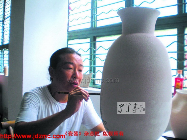 陈琳滨来景德镇画瓷,是缘于著名陶瓷雕塑家刘超鸿教授的邀请。