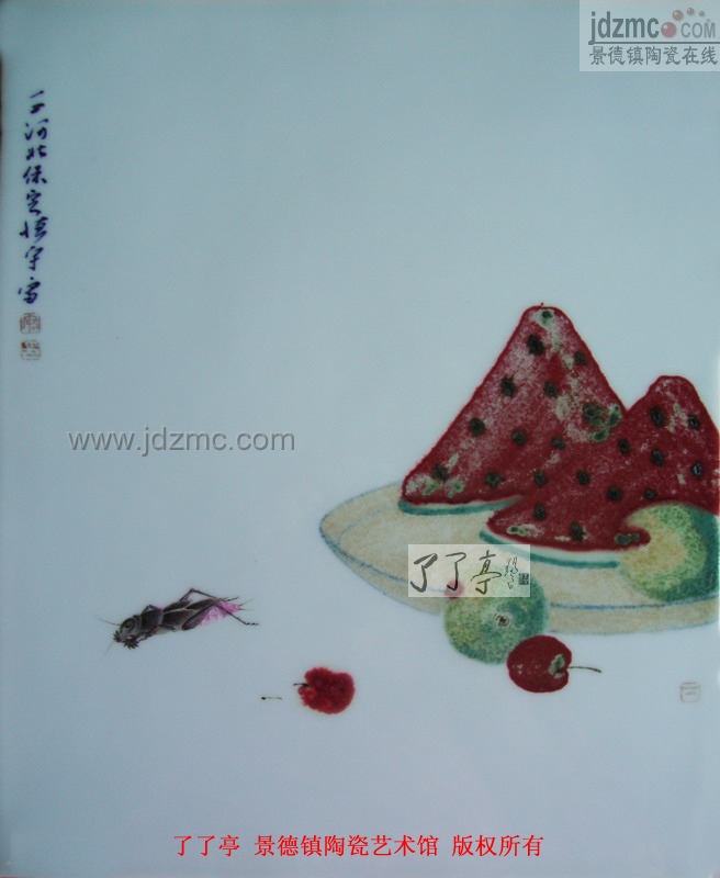 第二小类是全国各地的二线画家们。他们来景德镇进行陶瓷绘画,则完全是为利而来,是经济利益的驱使。首先他们作为一名全职画家要以艺术而生活,以手艺糊口。其次这些人在这几年的书画市场不景气时,这几年的画瓷热给他们带来了契会。例如近一两年的瓷器拍卖,使他们看到了希望,于是他们纷纷从各地涌进景德镇进行“掘金”。再次,景德镇的陶瓷制作费用低廉,一经手便有利可图。他们来景德镇也有专门人接待,通过某种人际关系在景德镇各个角落都可以看到他们忙碌的身影。笔者走访了很多地方,也同他们进行了沟通。如景德镇老厂、江西省陶瓷研究、景德镇雕塑瓷厂、景德镇为民瓷厂、景德镇新都陶瓷工业园、景德镇老鸭滩瓷板生产基地等等到处可见他们忙碌的身影。在景德镇江西省陶瓷研究所专门有接待外来画家画瓷的工作室,笔者在此见到了两位外地画家正在画瓷。他们二位一位来自天津,一位来自上海,据二位称他们每年来景德镇两次进行艺术创作,已经来了两年了,作品完成之后各自运回所在地举办展览。由当地美协出头来操办,然后进行展卖。他们讲效果很好,一来现在中国人生活富裕了,家里的装饰陈设也讲究了,二来现在的陶瓷大师级的作品价格太贵,而一些普通工艺美术师的作品往往水准不高,相对于此很多人喜欢他们的作品,一来他们有较深的国画功底,二来他们在当地又有名气,所以还是很有销路的。