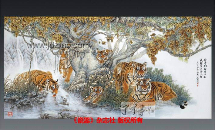 117cm×60cm瓷板《猛虎图》 82cm×46cm瓷板《竹影清韵》