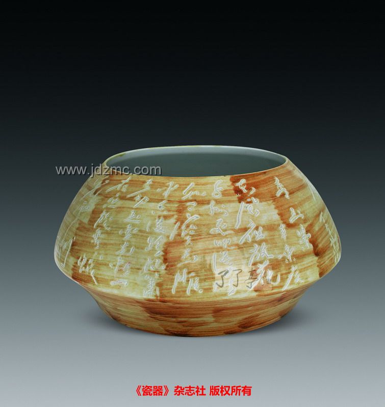 作为瓷艺、陶艺爱好者,先生亦被业内人士称为“铁笔刀书第一人”,在陶瓷艺术领域中,他兴趣广泛、技艺精湛、艺术表现手法多样,其作品融诗、书、画、形为一体,同时他善于驾驭各种工艺技巧,在坯上刻书法作品,达到无稿直书,并善以字传神,以画抒情。