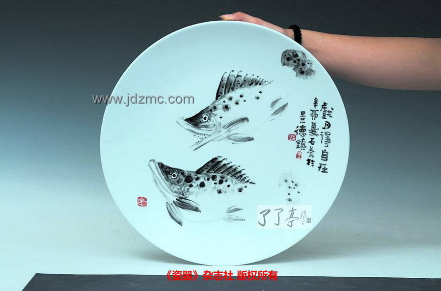 刚开始在作坊里作画,里面往来人多,声音嘈杂,四处都是坯粉的环境让他非常不适应,他只能把瓷板搬到住处创作,但一般的瓷画料必须用樟脑油调开,密闭的环境中,刚开始使用时受不了樟脑油的难闻气味。但有时,上帝为你关上一道门,必定为你打开一扇窗,正在武凤金无法可想并有些懊恼时,他灵机一动,尝试着将水和釉料调制,竟然发现,如此调制的釉料,竟能创作出一种独特的水墨瓷板画效果。