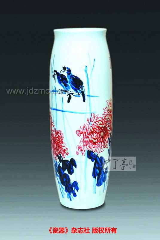 了了亭 景德镇陶瓷艺术馆 资讯 本文刊发于《瓷器》杂志:金呈鹏自幼酷爱绘画艺术,研习国画技艺40余年,拥有深厚的国画功底,2008年初,作为山东艺术界代表,应邀来到景德镇,参加中韩艺术家大型交流活动,即被景德镇博大精深的陶瓷文化艺术倾倒,从此全身心地投入到陶瓷艺术创作当中,一发而不可收拾。经过不断的努力探索与创新,金呈鹏将传统的水墨韵味与陶瓷艺术巧妙地融合在一起,形成融千年瓷画与国画相融合的特有艺术风格,成就了件件不朽的精品力作,其个人作品充满诗情画意,画面力求趣味性、色彩强调艳而不俗,俗而不艳之美,被众多知名人士和机构收藏,成为当代极具收藏价值的艺术珍品。