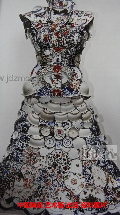 为什么要做一件瓷衣?李晓峰对潜意识中的创作冲动依然知之不详。他想起1 969年的冬天,母亲正因“反革命”的罪名被红卫兵批斗,无助的少年撕扯着母亲的衣服,声嘶力竭。记忆的冷酷目光一掠而过,重新柔和地抚摸“毛的时代”: “说起来那个时代还真是让人怀念,人人平等,没有贫富,精神上都有一个偶像。”很多次,李晓峰想把中国破碎的偶像拼贴起来,做成中山装,但这一意念被另一艺术家隋建国抢先实现。偶然地,李晓峰在景德镇看到一件瓷器旗袍——出自”艳俗艺术家”之手,他当时想,或许这件“瓷衣”应该有另一种形体。