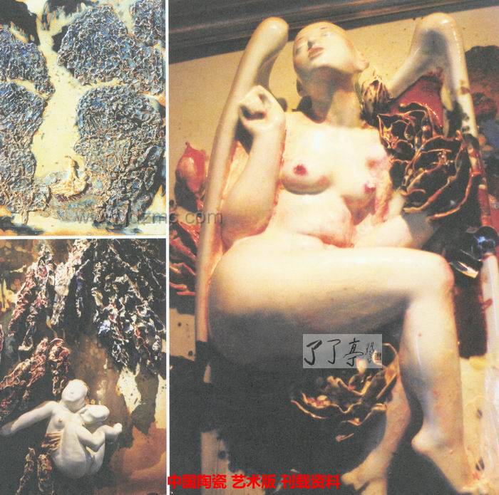 他的作品摆在环球陶瓷公司的—个大展厅里,印象中展厅光线昏暗,只有射灯打在这一幅散发着浓烈暖昧气息的作品上。也许正是这昏暗的环境,衬托得这些作品更加令人惊艳。