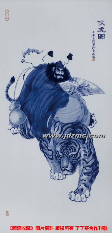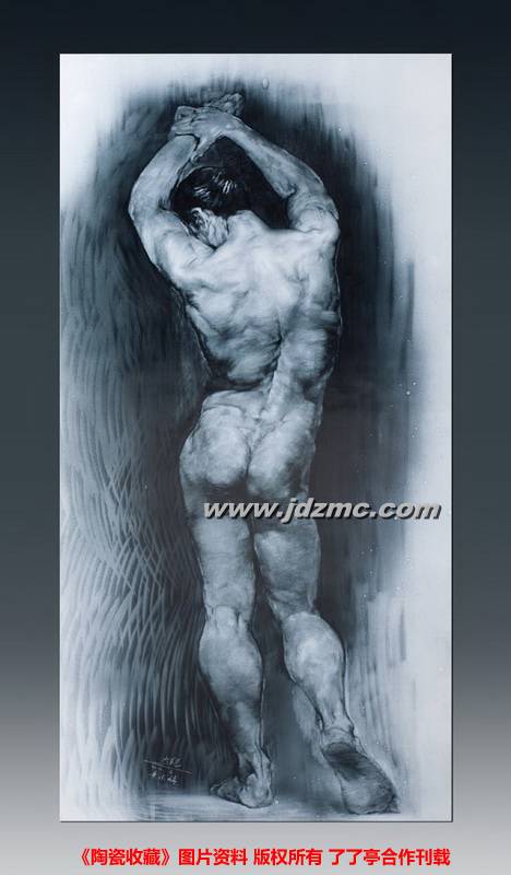 在这幅作品里,仅仅看到作者高超的釉下彩绘画技法和绘画功力是不够的,我们更应该看到对色彩敏锐的直觉和情绪表达的穿透力。同样,其它用高温黑料绘出的人物和动物肖像画,如《俄罗斯男子》、《男子人体》《小女孩》、《老子》、《欢欢弥勒》、《祥和》、《母子情深》等,都需要纯净、细腻而敏感的心灵,需要情感和道德高度。