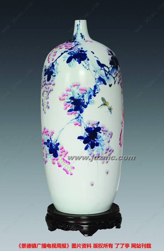 其后,刘嘉鸿有幸和景德镇没骨画陶瓷艺术家何叔水结识,再次拜其门下学习陶瓷绘画。何叔水先生是当今陶瓷界花鸟画大师,他的画风严谨,传统瓷画功底深厚。他对这位关门弟子也厚爱有加、悉心指教。至此,刘嘉鸿在陶瓷花鸟画创作方面如虎添翼。他将中国画与陶瓷绘画有机结合、强调内在意蕴,将国画的气韵与格调融入瓷画创作中,中国没骨画的精妙笔墨在陶瓷艺术载体上得到淋漓尽致的发挥。