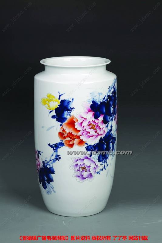 刘嘉鸿的瓷画构图精致巧妙,笔墨苍润、色彩艳丽雅致。叶、花、枝、鸟,浓淡交织,疏密适宜。观其瓷画似有缕缕清香扑面而来,瞬时把人心灵淘洗得明净澄澈。他笔下的牡丹,深得何大师的真传,花朵硕大、花瓣重重叠叠,互相映衬;色彩瑰丽夺目、色色相融;他画的荷花茎高且直,独傲不俗、亭亭玉立在万绿丛中,风姿卓绝且仪态万方……画面上的小鸟灵动活泼、形神兼备,观之让人沉入鸟语花香的幻境之中,韵味无穷,而又言犹未尽。