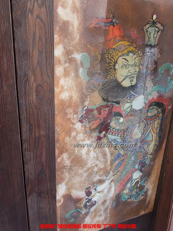 正中间的工作台上有一幅五尺六的《文殊菩萨》瓷板画,描好的线条,填充的色彩,它的作者周志兵正在伏案绘色。周志兵于2004年在景德镇学院(原景高专)艺术系学习的陶艺专业。大学期间,看到老师的敦煌壁画作品十分漂亮,顿时产生了浓厚的兴趣,于是开始翻阅各种敦煌壁画的图集资料。起初在瓶子上作画,颜色釉在立体的瓶子上烧制时受重力影响流动性大,影响了作品的整体效果。2007年一毕业,周志兵就和同学合伙开了家工作室,继续对高温颜色釉进行探究。但是当时新都的市场状况并不好,工作室没开多久便维持不了了。为了生计,周志兵来到一家瓷砖店,做起了马赛克雕刻设计。即使这样,周志兵也从未放弃对高温颜色釉的创作。他当时的工资收入基本上都用在买坯了,白天做马赛克雕刻工作,晚上回到家还会继续绘制高温颜色釉作品。