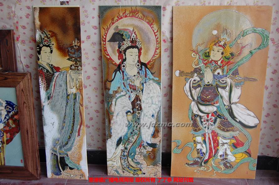 摸索的路程总是那么漫长而艰辛的,不同店家的釉料在不同的窑炉用不同的火候烧出来的釉色和感觉是不一样的。周志兵买来不同的釉料进行调制试验,在不断的经验积累过程中,掌握颜色釉的料色技巧。于2012年,终于在新都开办了自己的高温颜色釉绘画工作室,之后由瓷瓶画转变为了瓷版画,改善了大面积颜色釉流动的状况。