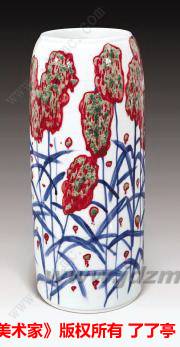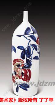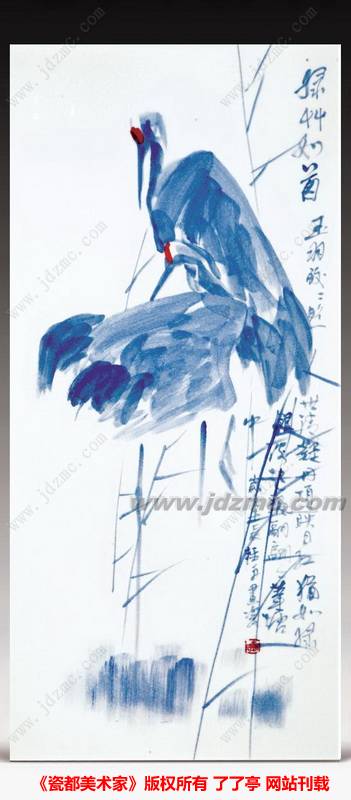 陈轻舟的泼墨瓷画里面,兼具了他所擅长的版画、曾经主攻的国画及对陶瓷材质的领悟,在驾驭自如中形成了他个人的瓷画风格,也为青花瓷画吹起了又一股新风。