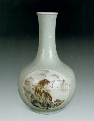 他有着深厚的家学源流及传统功力。他平日深究诗章,喜於吟颂,艺术素质很高,创作设计,从不草率下笔。他对所要描绘的对象,勤于观察,捕捉对象的神影,胸有成竹,一气呵成。他擅长画动物,尤喜画虎、狮,兼及人物、山水、花鸟、草虫等,意趣广泛而笔力老辣。作品以气韵生动,寓情于理,手法新颖,笔精墨妙而见长,无论雄浑之虎,抑或绢秀之花,入于画中笔下,均达意而传神,笔到意随,落笔有声。他,就是.珠山八友.之一徐仲南之子、著名陶瓷美术家徐天梅。