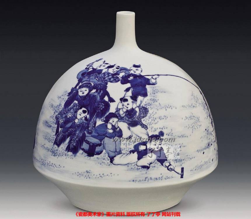 她是当代不可多得的陶瓷青花绘画艺术家,她是融现代审美与传统技法为一体的艺术传承人。她的存在,为当代陶瓷艺术注入了脱俗之风,清新而绵长。她笔下那些或静或动的场景人物,用纯真单一却恒久不变的青色,在自顾自美丽的同时,赢得了世人的惊叹和赞赏。