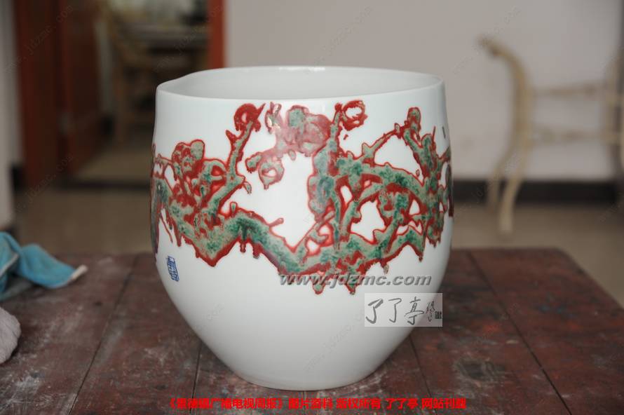 “历史留下来的遗产是我们可资借鉴的宝贵财富,但不是我们今天所追求的目标。我们不能在千年一贯制的老题材里转圈子,应该不断扩大视野,拓宽胸怀,要改变‘复制’的不良习惯,去观察体会和汲取不同环境中的新景物,兼收并蓄,为我所用”。陈轻舟被青花的魅力所倾倒,不知疲倦地沉浸在青花作品的创作,不 “克隆”自己或是模仿他人,而后是釉里红,再是釉下五彩,颜色釉,这些就如迷宫之中的线索,一步步让陈轻舟认识了陶瓷的真谛。