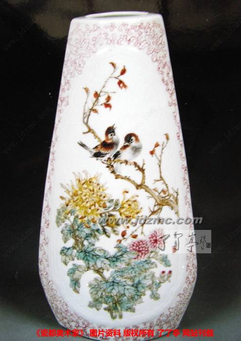 1970 年,则被调任艺术瓷厂专门负责“打图设计”,这一干就是20 年。画瓷 器,搞个人创作,这么“奢侈”的事情,先生只有在家或利用业余时间来实践。在所亲授的“打图设计”专职徒弟出师后的退休前夕,先生依旧回归了艺术瓷厂美研所。