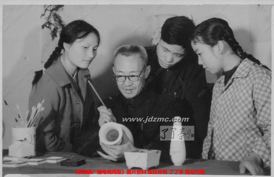 在珠山八友当中,刘雨岑是这些人当中年龄最小的,与年纪最大的徐仲南相比差着一辈。正是因为他的勤奋好学,才使得他小小年纪就才华横溢,深得珠山八友中王琦的赏识与喜欢,并收他为义子。文化大革命之前,有一批国内著名的画家林风眠、唐云、朱屺瞻、王个簃等先后都来过景德镇,刘雨岑作为景德镇的美协主席亲自接待过他们。他们经常到艺术瓷厂、部陶研所等地一起进行创作、互相交流国画和瓷画的心得。这些国画界的大师泰斗们非常谦虚、也非常随和,刘雨岑既把他们尊为老师,也把他们视为兄长。当年的刘平大师年纪很轻,唐云、王个簃画画时,刘平就经常为他们磨墨、或者搓料,成为这些艺术大家们的临时“书童”。