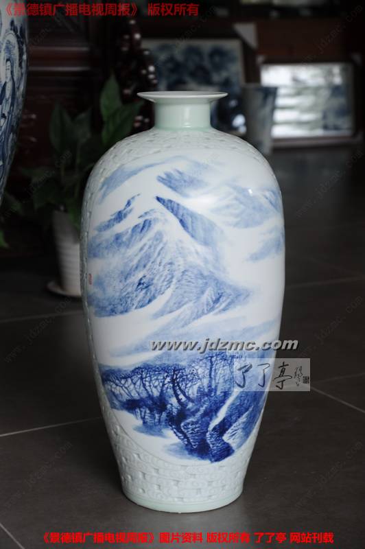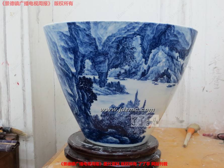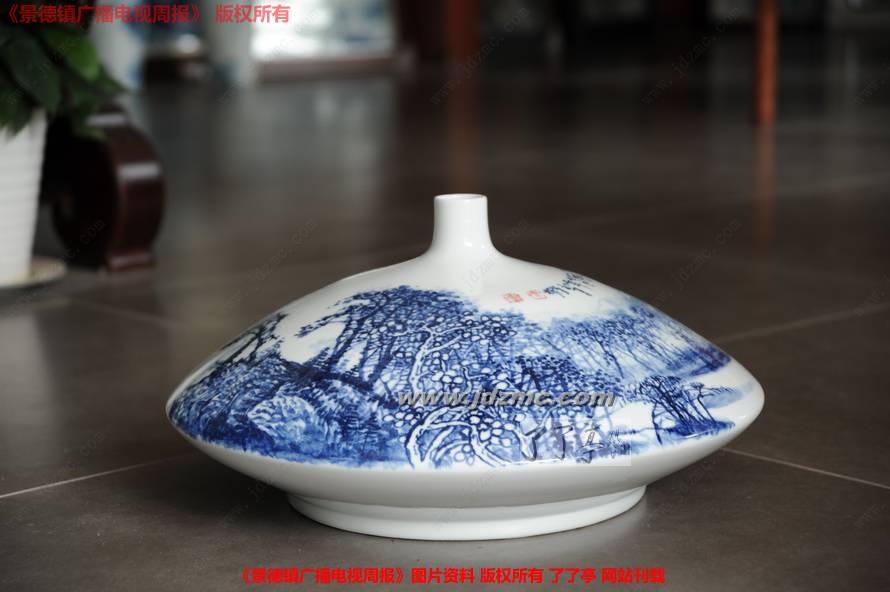 “ 热爱是守望的最佳状态。艺术是需要热情的,只有热爱才能产生无限的热情,才可以让艺术创作有着源源不断的新的审美与创造。”李金辉对陶瓷艺术语言的理解具有其独到之处。他从不同的方面展开了他对瓷上山水画的认识与理解。他认为陶瓷绘画必须具有艺术家独特的个性符号,越是有个性的越是地域的,越是地域的越是民族的,越是民族的才越是国际的。因为陶瓷实际上是中国传统文化的一个载体,你不管如何去画,仍然离不开中国绘画的基础。青花山水与中国传统绘画有着异曲同工之处,如果中国陶瓷艺术运用西方绘画的色彩、光与影的原理去表现,那体现的就不是景德镇陶瓷工艺与艺术,当然也就谈不上民族特色,瓷都也就不可能千年立足于世界的东方。
