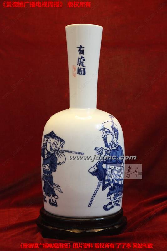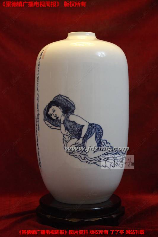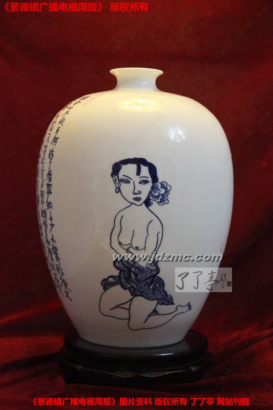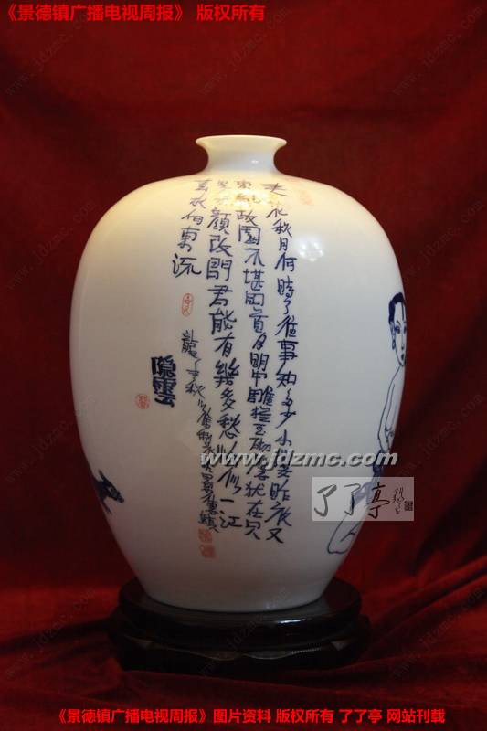 观吴以徐所画的瓷器作品,大多是瓷瓶为主,感觉他好像对画瓷板显得兴趣不是那么浓厚。问原因很简单,他说:“画瓷板时总感觉和在纸上画画有很多类似的地方,我也为朋友画过一些瓷板,也认识好多画瓷板的画家,这只是个人的爱好。喜欢在瓷瓶上画画,是因为立体的载体形态不同,会给予更多创作上的想象空间,区别了平面创作的画面处理和表现。” 吴以徐告诉记者刚来景德镇时,一位画家朋友曾告诉过他,“画瓷瓶要每个角度都有可看之处……”看新烧出来的《落花开花》系列瓷瓶,“创作时总在考虑着画面起点和终点的汇合,就是题字和印章也要作为画一样能与首尾呼应,结束也是开始。当瓷瓶转动时,画中的他们与景物,仿佛不再是凝固状态,亦能增添画面活跃起来的感觉……”此时,记者好像也看到了一个奇妙的瓷器艺术世界,内心有了一种震撼。
