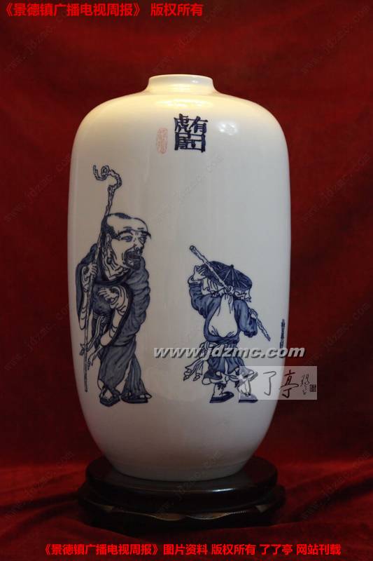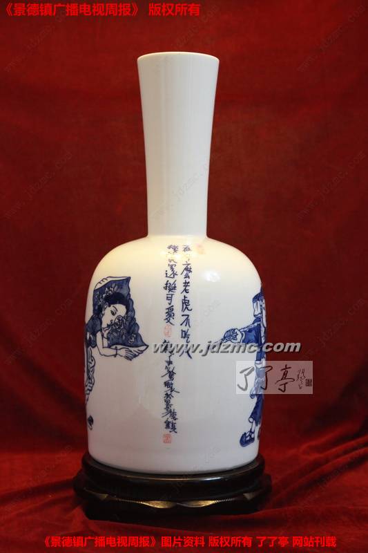 吴以徐为了更好地让记者理解,他起身走到工作台旁,随手转动起一件未完成的瓷器作品;作品随着底座的带动有节奏地缓缓转动着,而瓶坯上的画中人,画中的景色,由开始的静止慢慢地显现出一种黑白老电影流变的韵味;记者似乎不是在凝视一件瓷瓶静物,而是在观看一部有趣的黑白电影,趣味盎然。