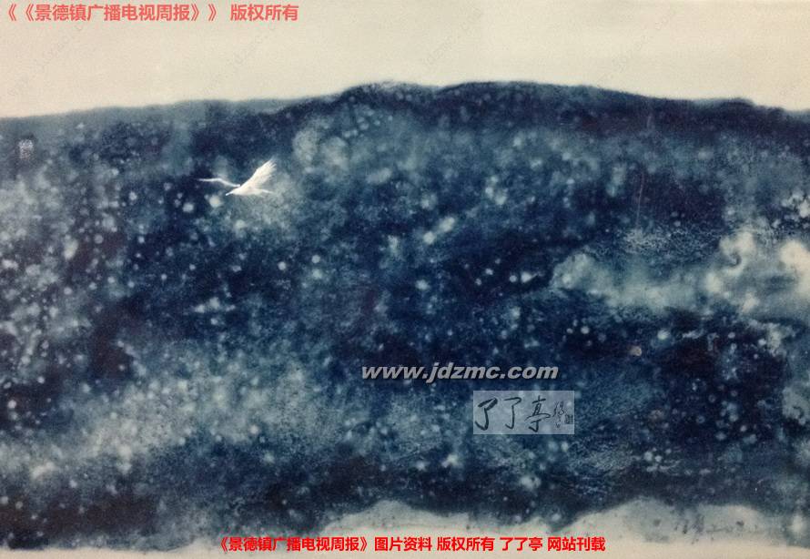 艺术来源于发现。多年前,一件青花作品中的异常发现让我开始研究新的青花表现方式。我无意间看到一幅我的青花作品背景中有一个处很有意思,它的表现效果与传统青花有着很大的不同,趋向于茶水风干之后的茶渍效果,也像屋雨漏痕之迹。这个发现促使我对它进行了全面的研究,在不断的实践中总结理论,丰富技术和工艺,逐步形成区别于传统的青花分水,一种全新的青花分水表达方式-----水渍青花。我自己的艺术语言符号。