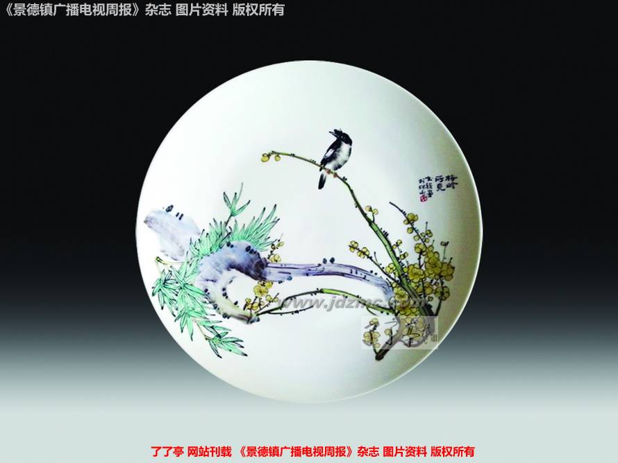 沈书祯先生认同古人“画有画品”之说,认为“瓷有瓷品”:一:上等上者——逸品,逸则称绝;二:上等中者——神品,有技有形有神,神极则至逸;三:上等下者——妙品,妙极则通神;四:中等上者——精品,精极则显妙;五:中等中者——良品,有形无神,良极则尚精;六:中等下者——能品,有形有技,能极则趋良;七:下等上者——成品,有形无技,成极则有能;八:下等中者——次品,无形有技;九:下等下者——废品,无形无技无工。从沈书祯先生早年作品到近期作品,他的作品一如既往地表现着他的“人品”,即使曲高和寡也不愿流于世俗。近期作品更是删繁就简,娴熟精到的寥寥数笔,跃然画上。洒脱的用笔和随意泼写的色彩有力度、有韵致,颇具节奏感。闲云野鹤,傲立寒冬。喻情于画,形成自己的艺术风格和独到的艺术个性。