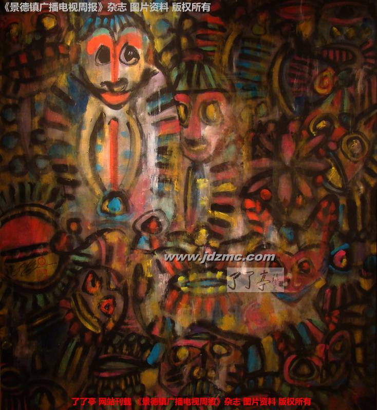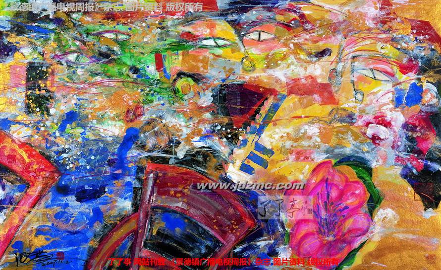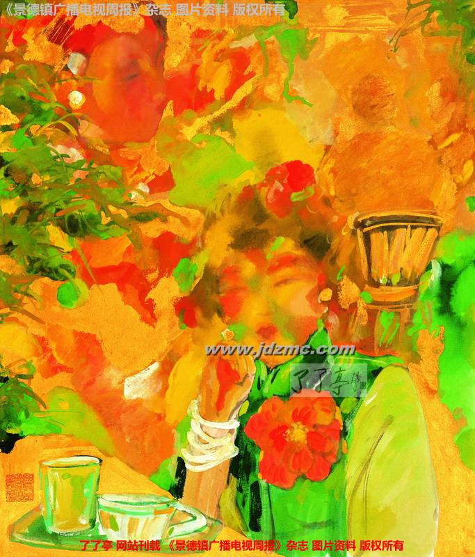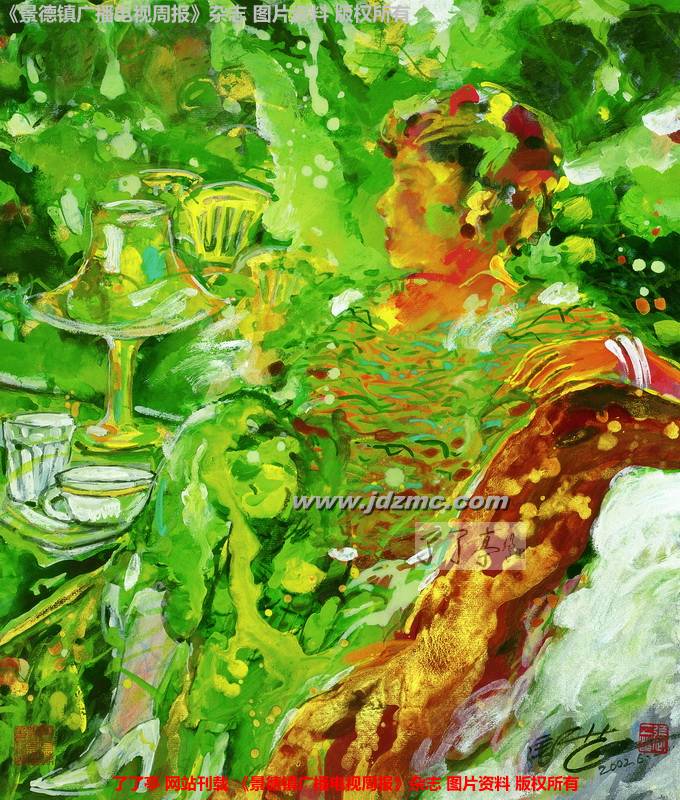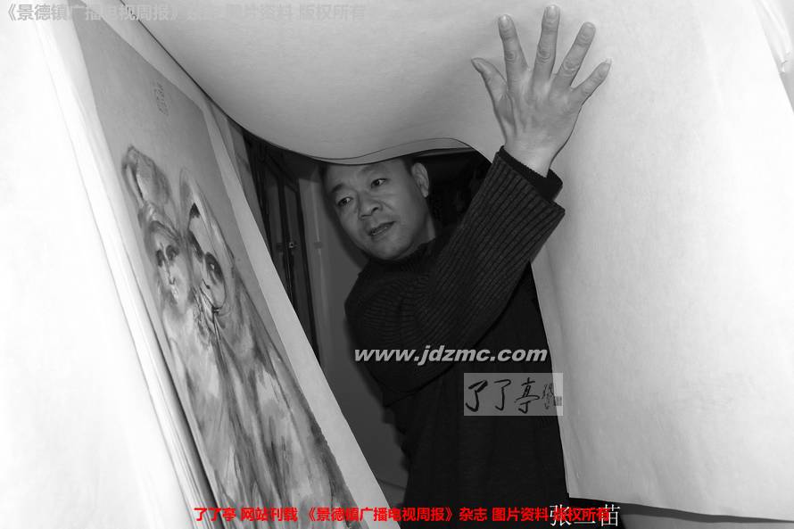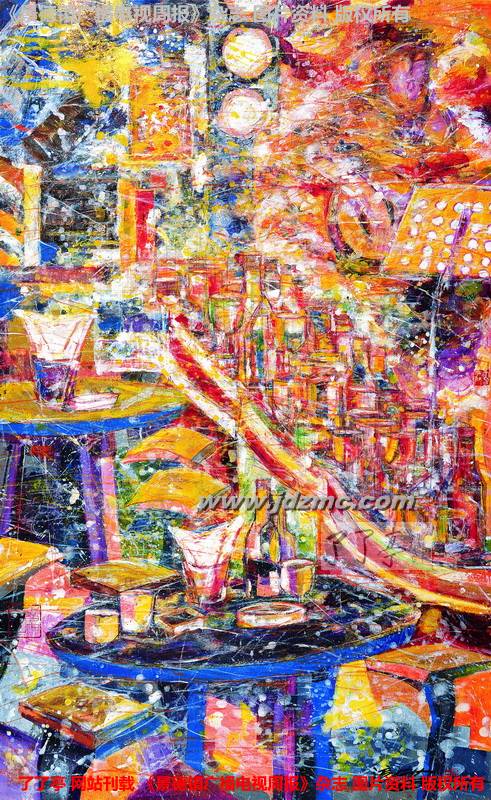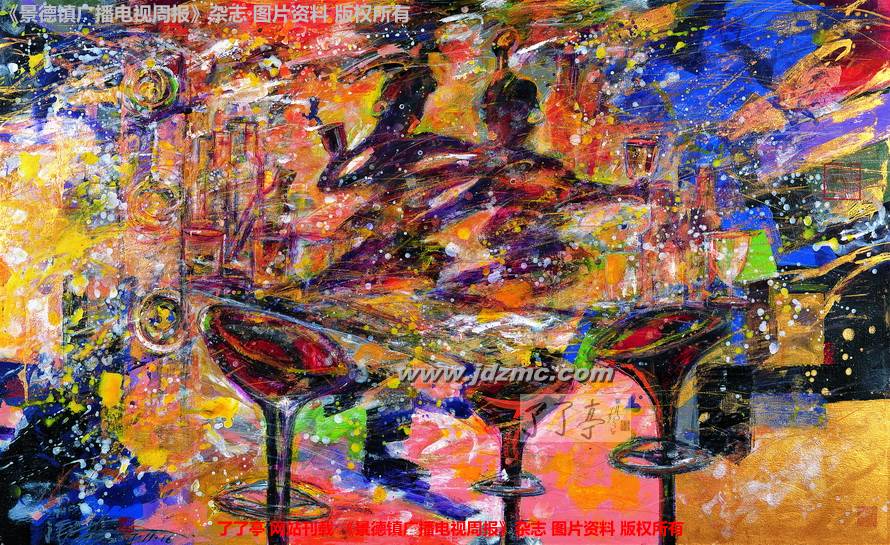 不知有多少人使用过张二苗设计的邮票,不知有多少人收藏着张二苗设计的邮品.这使得很多人知道张二苗是一个优秀的邮票设计家.然张二苗还有很多不为人知.走进张二苗的工作室,你就会看到一个多姿多彩的艺术世界,你就会认同他还是一个独树一帜、别开生面、颇有创新的优秀画家.在他工作室的柜子里、桌子上摆放着景德镇烧制的二苗手绘的青花瓷罐,彩釉瓷瓶、瓷碗;有人物有花鸟,表现着作者独到的审美价值和创作理念.使一些老画家、收藏家必欲取之.他品类繁多的绘画创作中有带着泥土气息像生动泥塑一样的动物画和人物画; 有以生活气息和市井文化为写生基础的人物画.不少画已被人订购收藏,只因画展需要而暂存室中.我被他创作的酒吧系列画深深吸引和打动.他在酒吧系列人物的造型上采用了“造型具象的抽象”,在配置的表达上又取法“抽象的具象”,有机的把东西方造型理念巧妙的结合在一起,让人的思维跟着画面充分的驰骋,享受着思维中的美;而他在赋色上不但采取了“以色代墨”理念,更重要的是施展了“以色代墨”的融合,使整个画面色彩丰富、艳丽,让人留恋于轻松愉快之中.他的有些绘画和法国莫奈的有些作品一比较,就会惊奇的感到竟异曲同工.我被吸引的不得不采取“掠夺”的方式来丰富我的收藏.