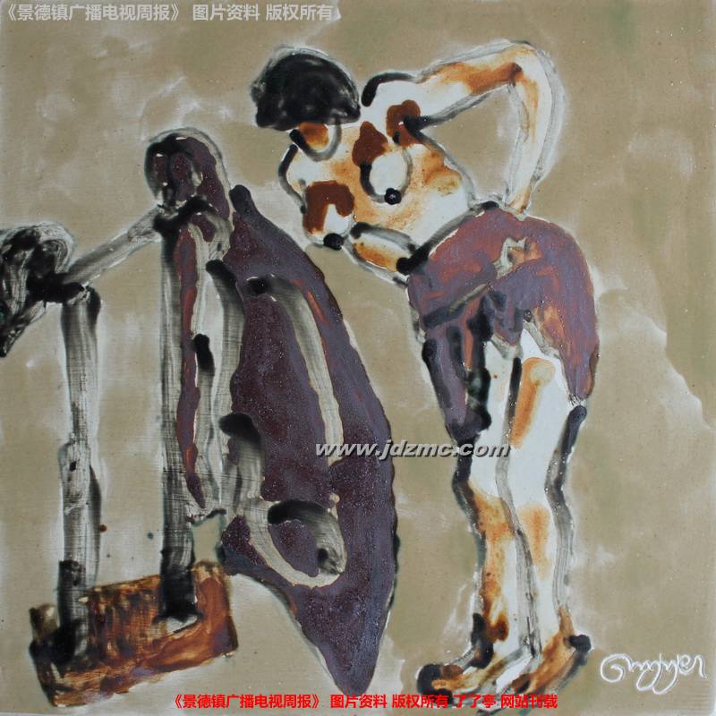 大约2008年,齐冬根偶尔认识一个艺术家,指导他画了一点画,用青花料在瓷上涂涂抹抹一些非具象的符号,这种东西搞起来很容易,画在瓷器上也有一点装饰性,说白了,齐冬根是想看看自己能不能也跟满景德镇的人们一样,自己随便弄一点好玩的小东西,出去换两个钱。在景德镇,乱涂乱抹的小瓷器,杯盘碗什么的,都能换钱。重要的不是艺术,而是这些东西一来可以实用,而来与工业化批量生产的东西确有不同,迎合了人们追求个性的心理。