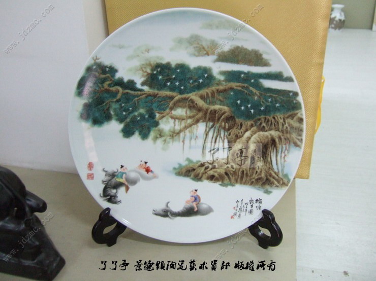 | 李文跃《榕塘牧牛图》瓷盘 贴花 参考价格:几百元 | |||||