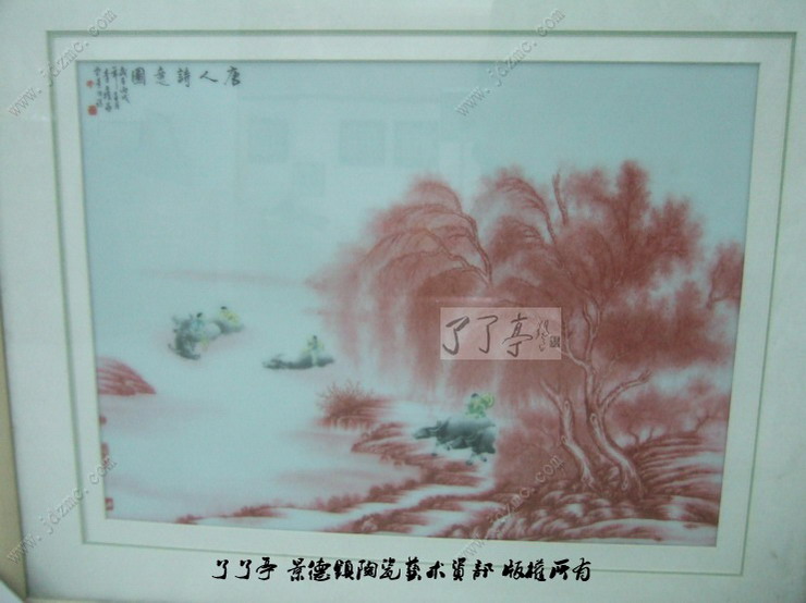 | 李文跃 玛瑙红《唐人诗意图》贴花瓷板 | |||||