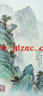 粉彩山水瓷板