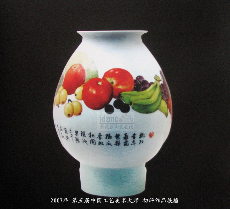 07年国大师初评作品-浅粉彩瓷瓶《瑶池果熟》胡光震