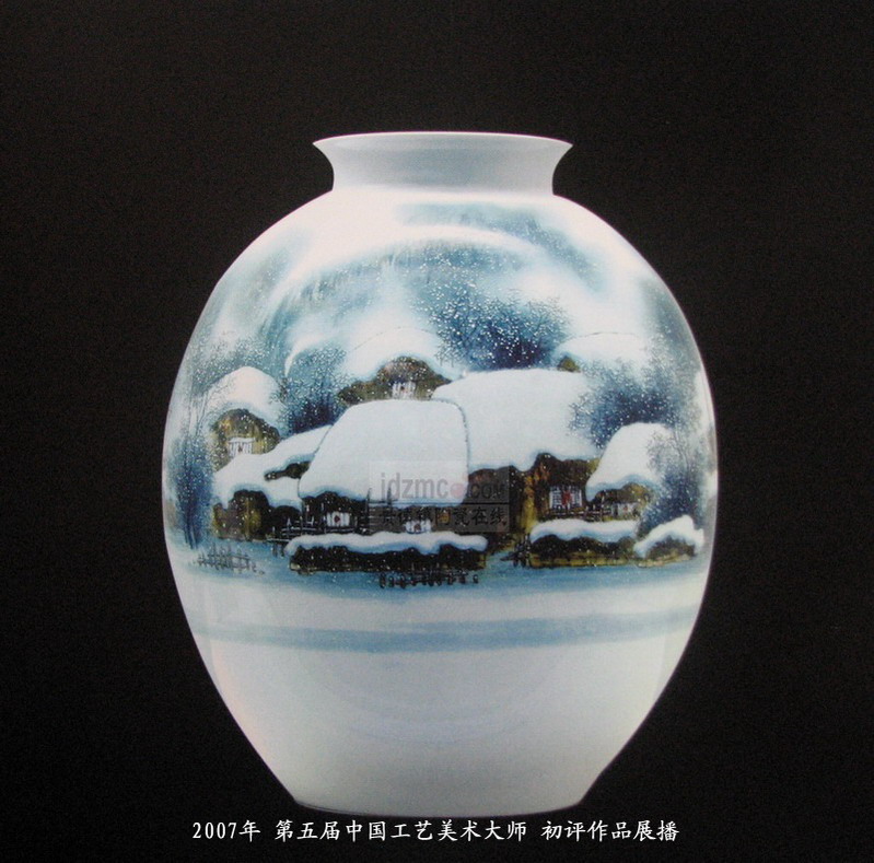 07年国大师初评作品-粉彩雪景山水瓶《瑞雪丰年》刘伟
