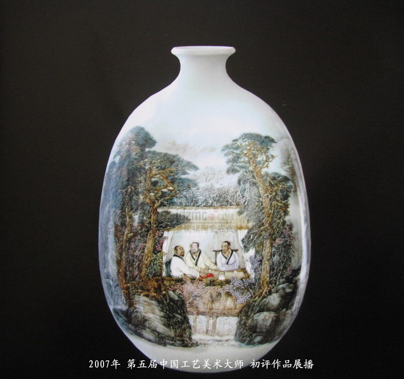 07年国大师初评作品-粉彩瓷瓶《松风雅集图》饶晓晴