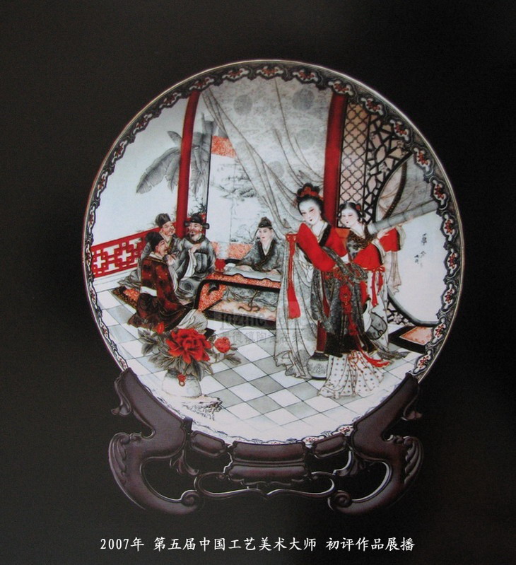 07年国大师初评作品 粉彩圆盘《红绡》章亮
