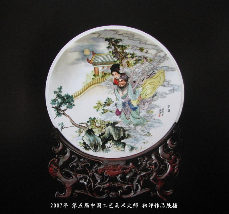 07年国大师初评作品 粉彩圆盘《红绡》章亮