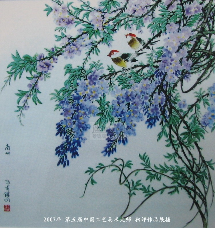 07年国大师初评作品 瓷板画《紫藤小鸟》徐亚凤