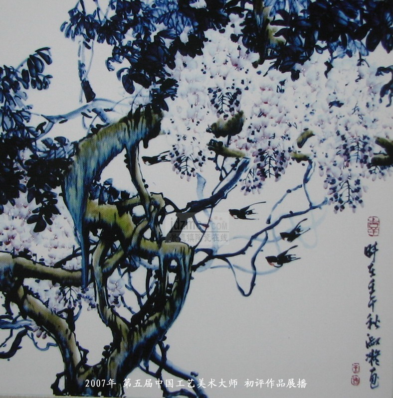 07年国大师初评作品 釉下高温窑变色釉彩瓷板《紫腾飞燕》王淑凝