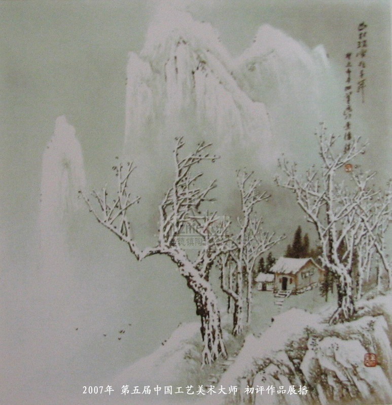 07年国大师初评作品 粉彩装饰瓷板画《山村瑞雪兆丰年》余仰贤