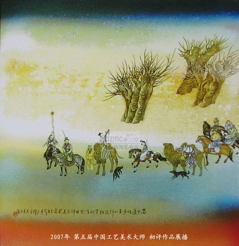 07年国大师初评作品 粉彩装饰瓷板画《昭君出塞》李文跃