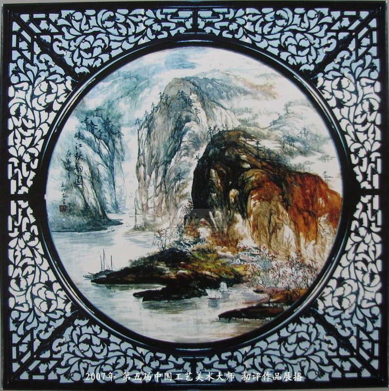 07年国大师初评作品 丝网色料彩绘山水瓷…
