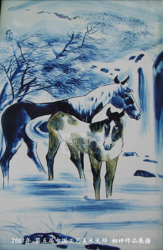 07年国大师初评作品 青花装饰瓷板《双骏图》吴胜华