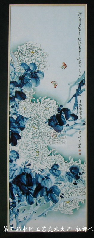 07年国大师初评作品 青花斗彩瓷板《白菊双蝶图》王淑凝