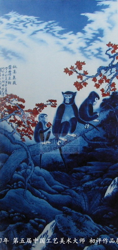 07年国大师初评作品 青花斗彩瓷板《白菊…