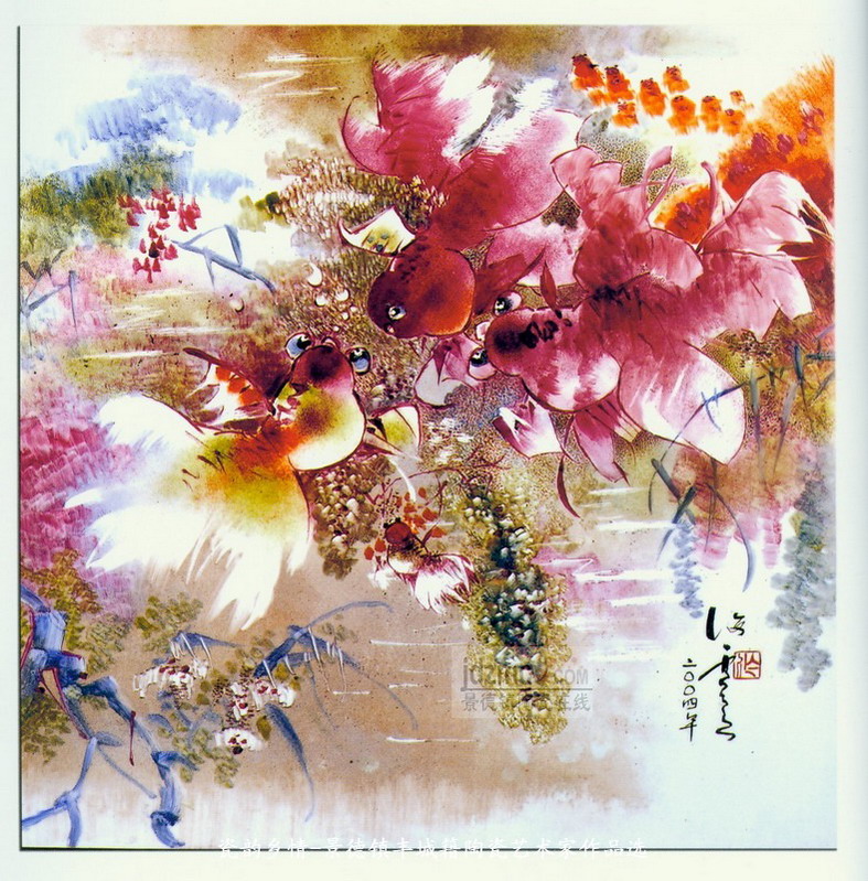景德镇丰城籍艺术家-釉上彩《金鱼》瓷板 作者:黄海云