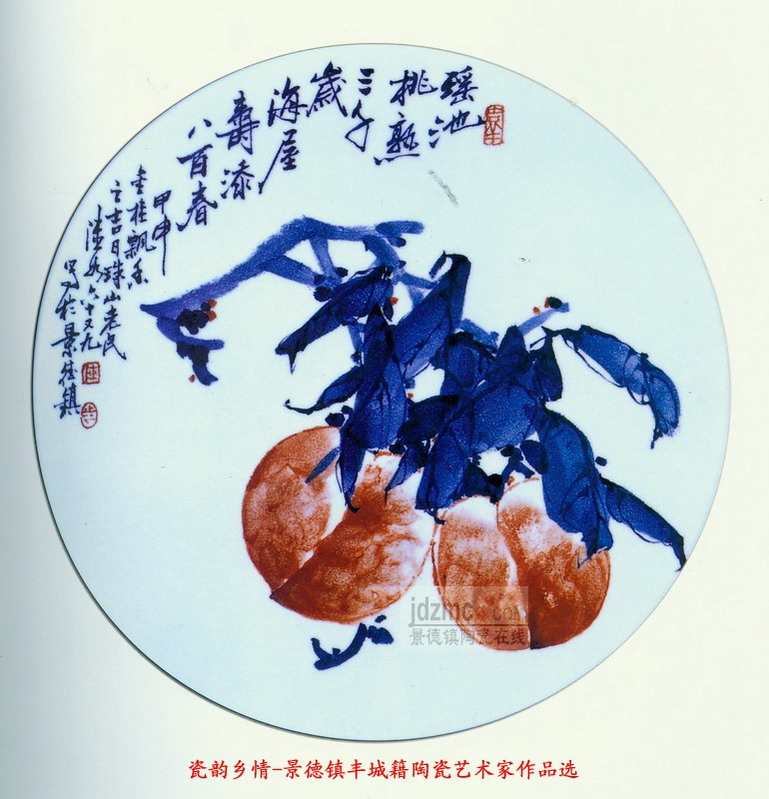 景德镇丰城籍艺术家 青花釉下彩《瑶池桃熟》瓷盘 作者:陆如