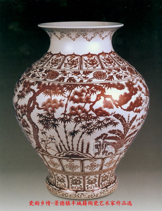 景德镇丰城籍艺术家 《松、竹、梅》釉里红大罐 作者:熊璧如