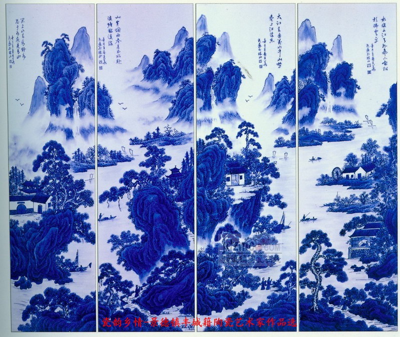 景德镇丰城籍艺术家 青花《江南山水》瓷板 作者:王华民
